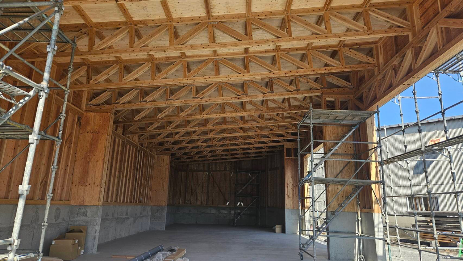 この広大な倉庫空間に豊富な在庫を管理することで、お客様の「確実な納期」や「急なご要望」にも対応できる体制を強化しています。 この大スパンの無柱空間を実現している屋根の「トラス構造」 も、強み②でご紹介した私たちの加工技術の一例です。